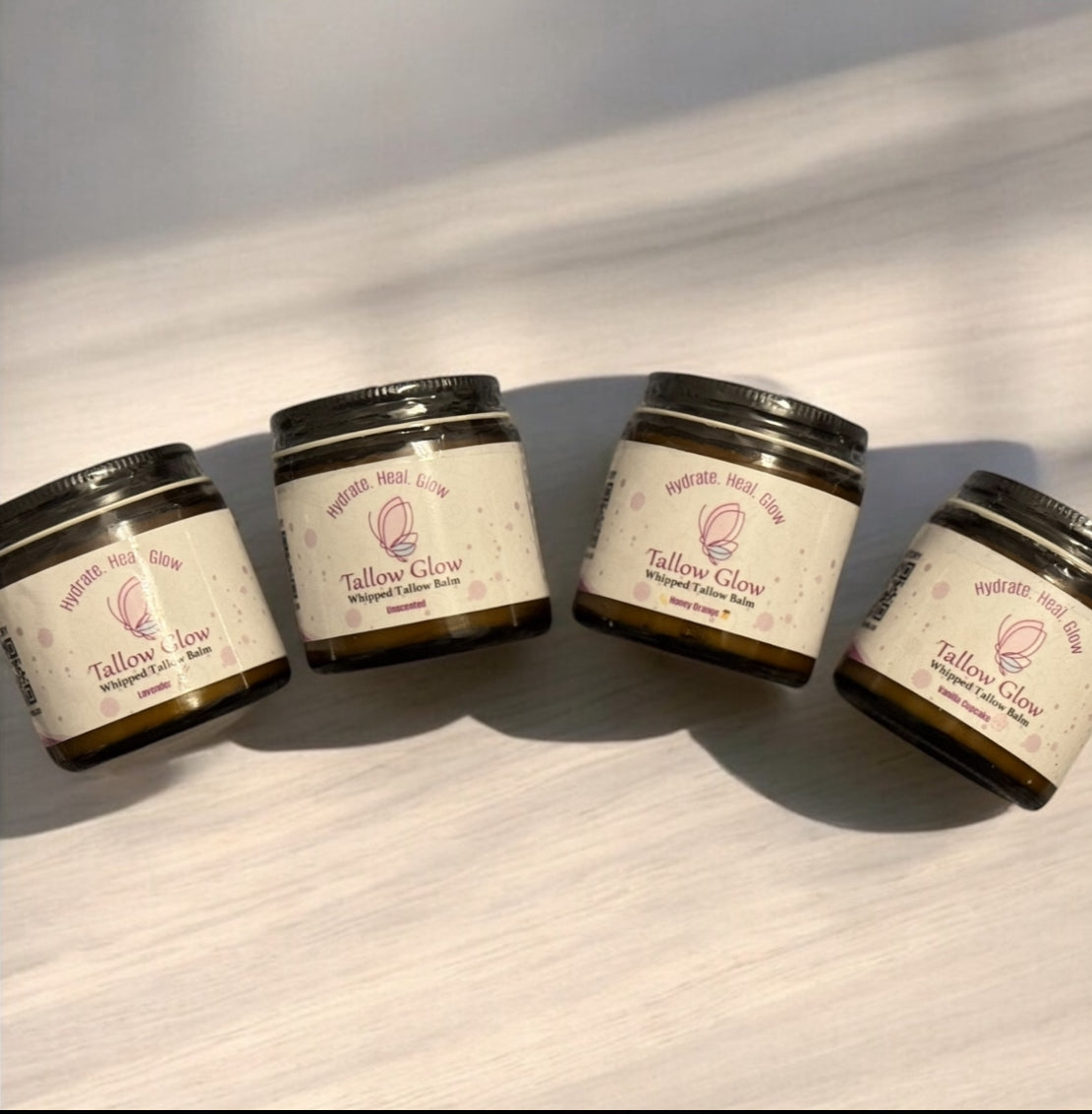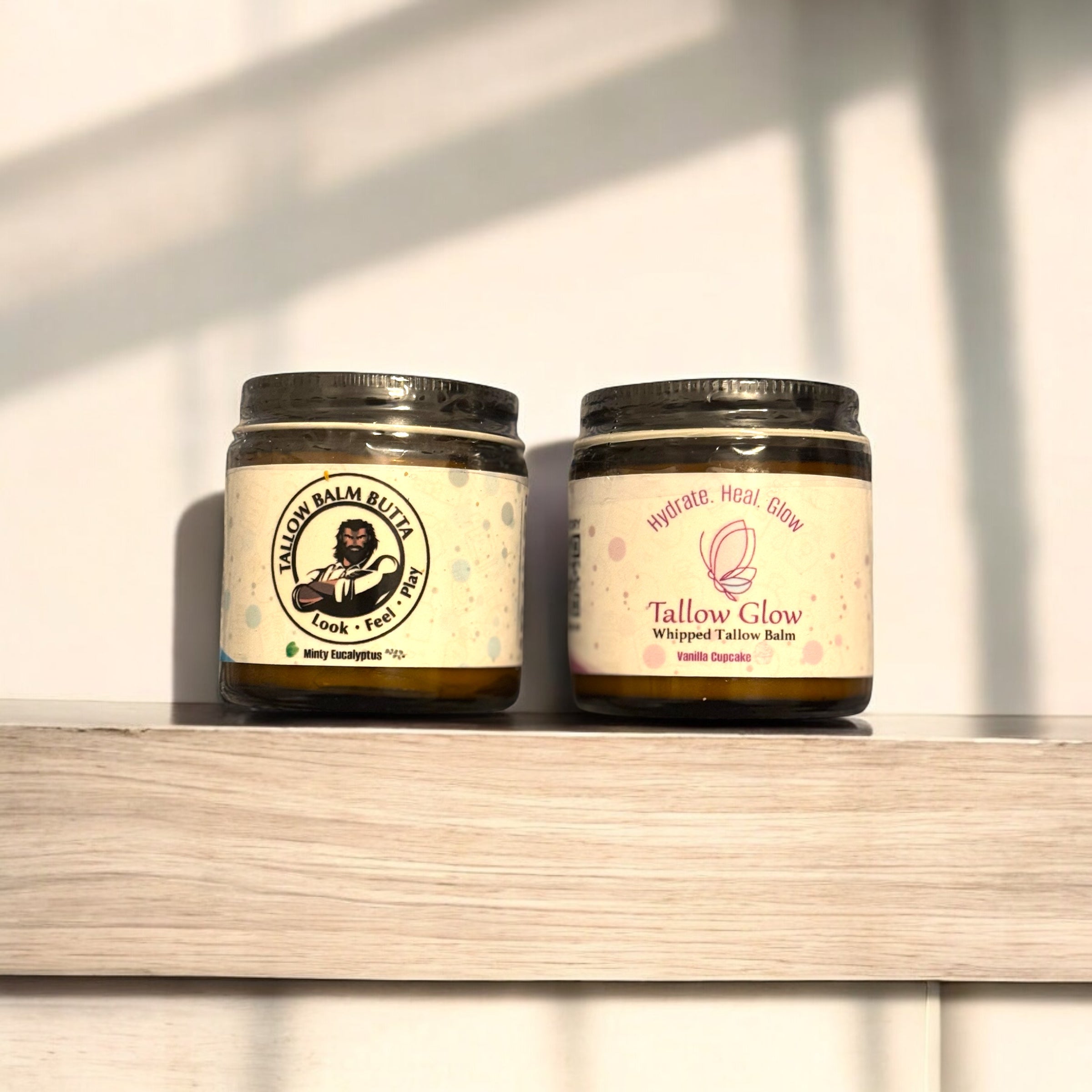 At Tallow Roots, we craft skincare from nature’s best, rooted in regenerative farming. Balm Butta delivers a rugged, masculine essence with deep nourishment, while Tallow Glow offers a gentle, feminine radiance with silky hydration. Both are made from grass-fed, grass-finished tallow and premium jojoba, meeting every skin need and desire, his & hers.